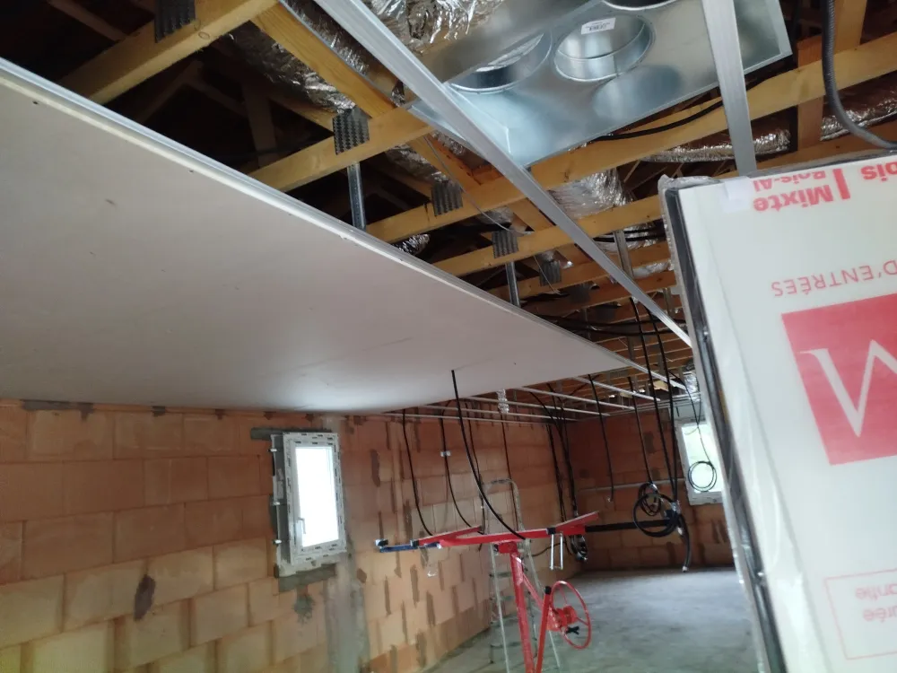 votre peintre en bâtiment à à été appelé pour une maison neuve. pendant son intervention, votre professionnel a procédé a la pose ba13 au plafond.